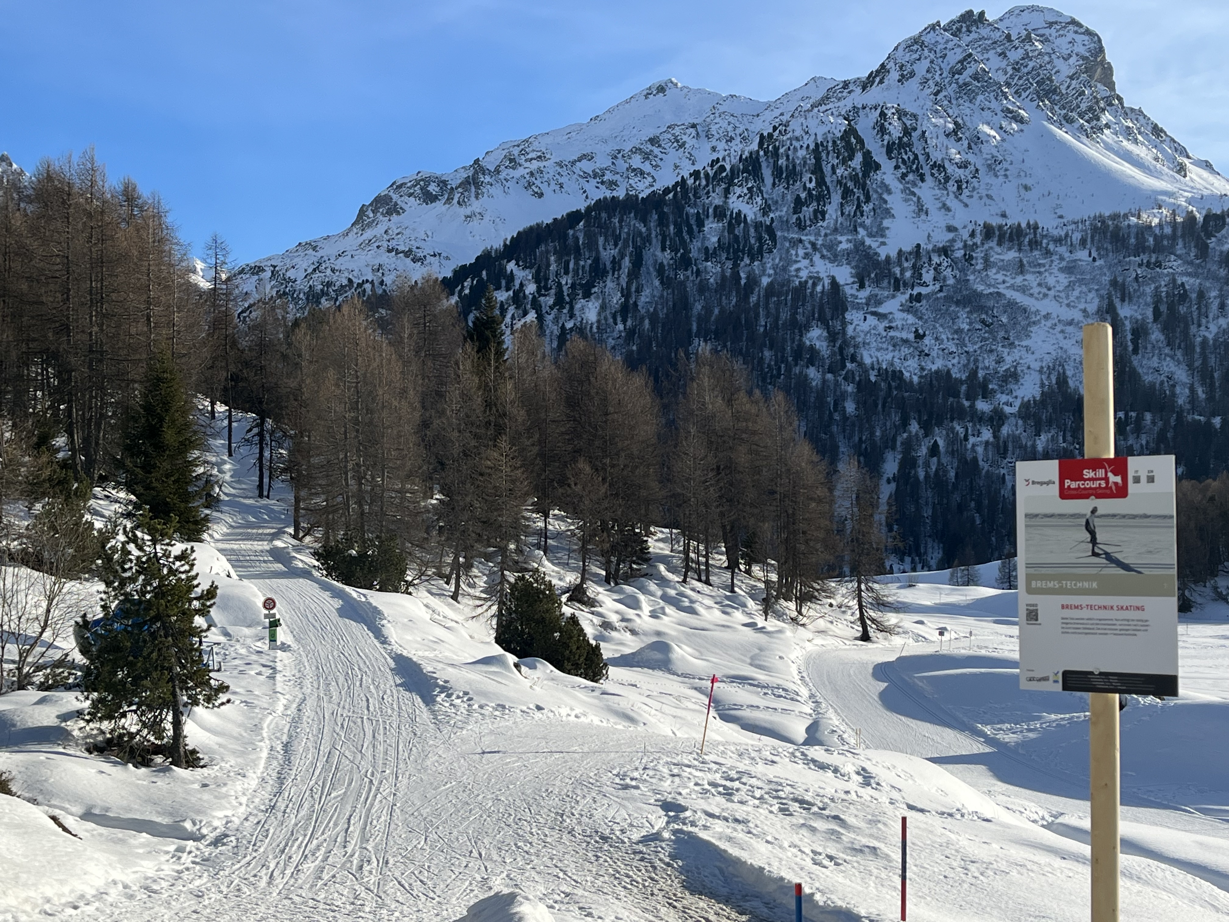 Neu gibt es ab Winter 2025/2026 in der Seenregion, in Silvaplana, Sils und Maloja drei abwechslungsreiche Langlaufparcours welche das „Selbststudium“ der Langlauf-Technik im Gelände ermöglichen. Mit lehrreichen Tafeln, Fotos, Erklärungstexten und via QR-Codes zugänglichen Videos lässt es sich an den einzelnen Elementen des Skating- und Klassisch-Langlaufen im eigenen Tempo und nach eigener Verfügbarkeit feilen. Soll nur an der Skating-Aufstiegstechnik gearbeitet werden? Kein Problem, individuell wählt sich jeder seine Lernposten aus und probiert solange es Freude und Sinn macht. Der Langlaufparcours ist als Einstieg geeignet, jedoch können Langläufer/-innen mit ersten Technikkenntnissen am meisten vom Selbststudium profitieren. Bei Schwierigkeiten empfiehlt es sich, ergänzend zum Selbststudium, noch die eine oder andere Langlaufstunde zu besuchen. Für weitere Auskunft bitte in den Tourismusbüros und Sportgeschäften der einzelnen Ortschaften melden.