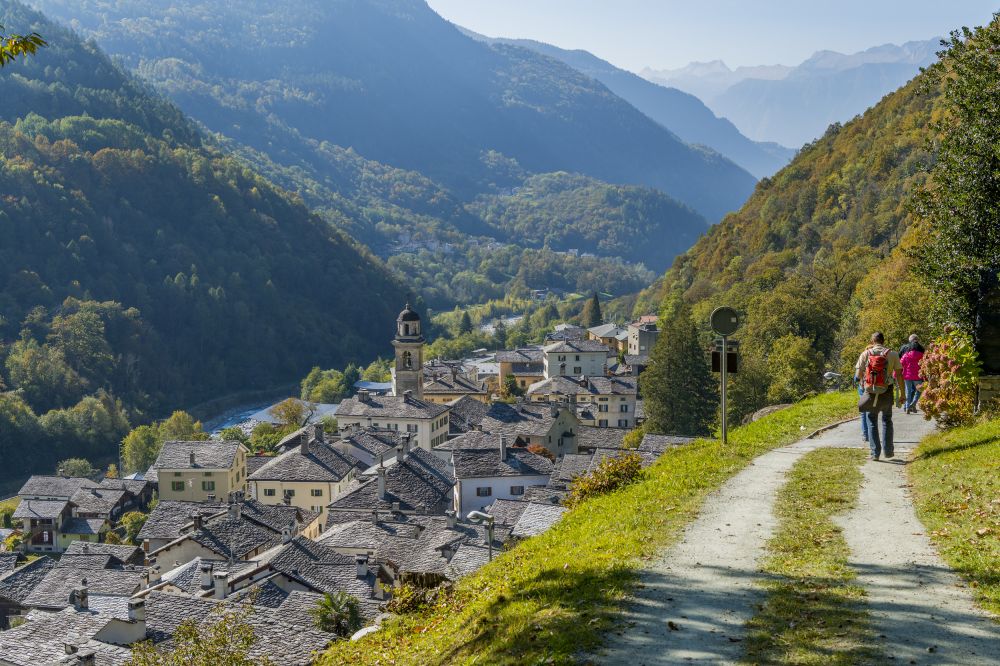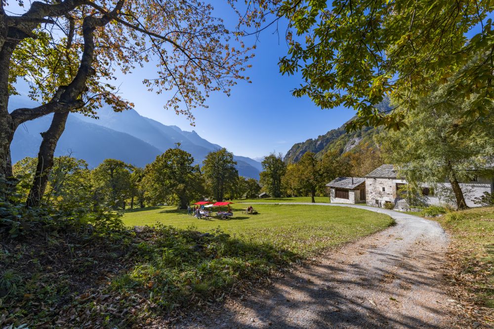 Individuelle Anreise nach Castasegna. Teilnahme am kulinarischen Rundgang „Caminä e mangä“ im Kastanienhain von Brentan.