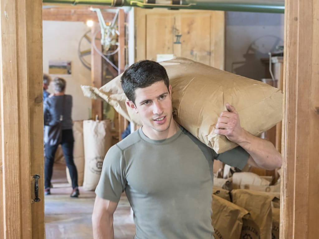 Jungbauer aus Coltura. Initiativ, innovativ und motiviert neues anzupacken, was dem Tal zu einem Mehrwert verhelfen kann. Konkret heisst das im Fall von Jan Schmid und einem Kameraden – Sie bauen Weizen an. Noch ist die Produktion und der daraus entstehende Ertrag klein – noch.